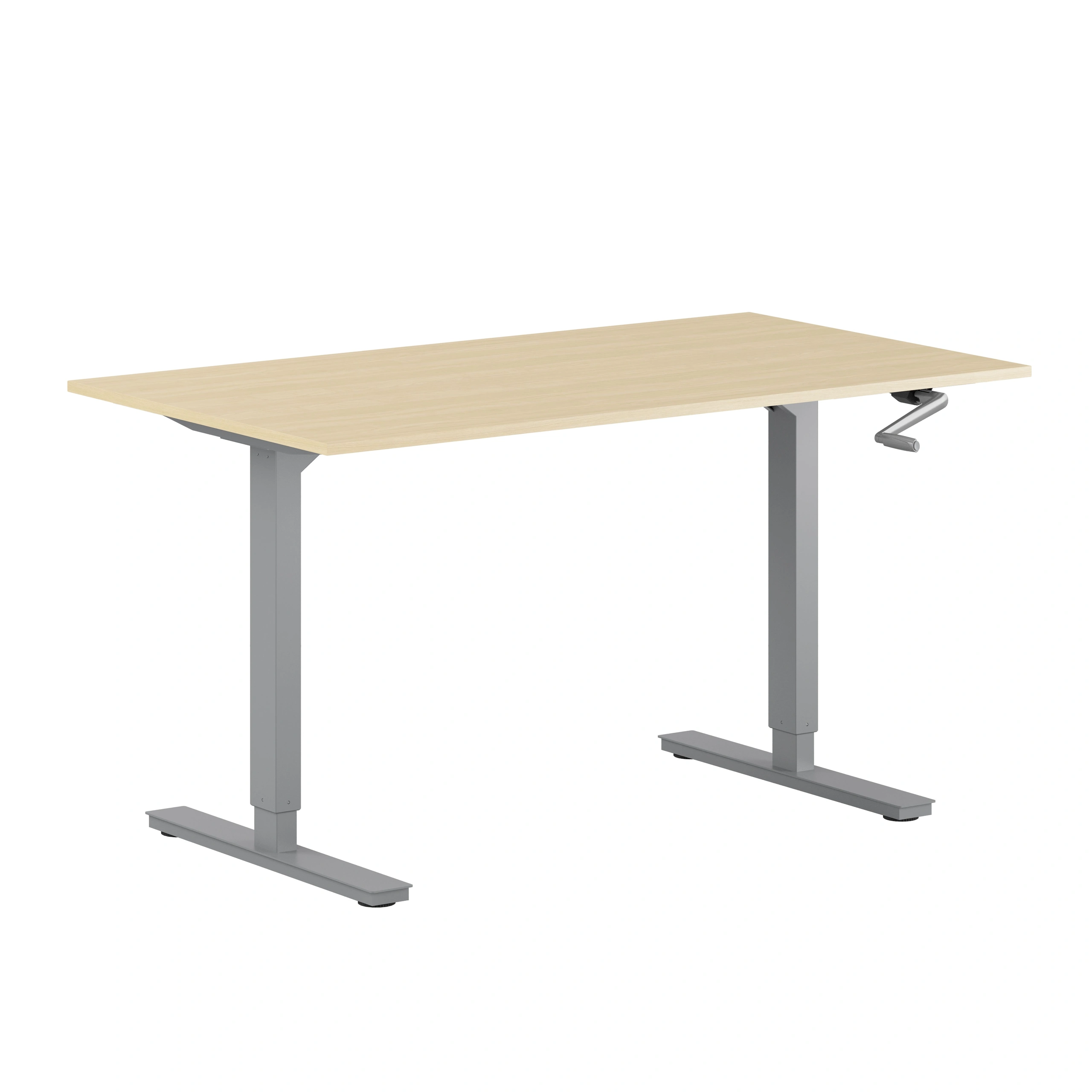 Manuellt höj- och sänkbart skrivbord för kontor StepUp är vår stilsäkra kollektion av manuella höj- och sänkbara skrivbord. Här hittar du ett prisvinnande alternativ till våra höj- och sänkbara skrivbord på el. Bordets höjd manövreras manuellt med vev och går från 690 till 1150 mm högt. Skrivbordet finns i flertalet olika modeller och storlekar, här presenteras 180cm skiva med grått stativ. StepUp passar utmärkt till såväl hemmakontoret som till den större arbetsplatsen. Skrivbordets stativ är tillverkat med omtanke och kvalité för kontorsplatser som skall hålla länge. Med sina raka former, och pulverlackerade ytskikt matchas denna klassiker enkelt in med resten av inredningen. Detta höj- och sänkbara skrivbord för hemmakontor och kontor, har en lyftkapacitet på 80 kg vilket gör att det klarar av kontorsvardagens alla hjälpmedel. - Höj- och sänkbart skrivbord med vev - 180x70cm - Grått stativ - Välj mellan olika varianter på skiva: vit / svart / grå / ek / björk - God kvalité i tidlös design Psst! Är du på gång att skapa en tillfällig arbetsplats och letar efter en hållbar lösning? Du vet väl om att med vår återanvändningsgaranti kan vi köpa tillbaka skrivbordet av dig när du inte längre behöver det. Fiffigt va?