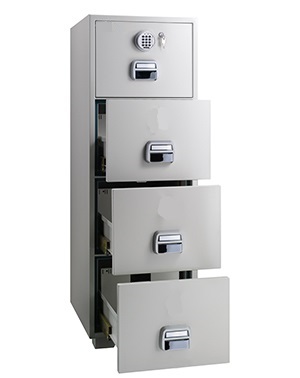 Vertikalt arkivskåp som med sitt stora djup är optimalt för förvaring av diverse dokument, kontrakt och journaler. Det är klassat enligt brandklass 90P och ger ett stöldfördröjande skydd. Skåpet är inrett med mappskenor.
