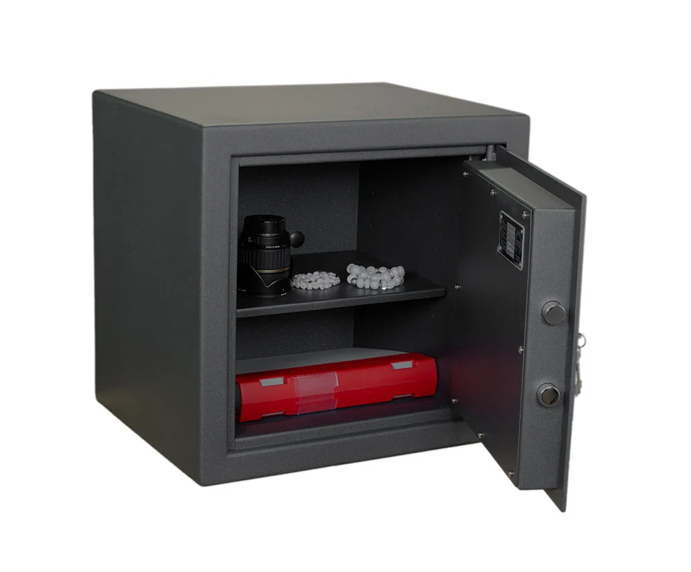 S2-FS stöldskyddsskåp finns i 6 olika storlekar och skyddar dina värdefulla saker. Skåpet har snygg design och passar bra i både hem och på kontoret. För bästa säkerhet kan man förankra skåpet, vilket är förberett i rygg och botten. Det gör det svårare för tjuven. Skåpets hyllor är flyttbara, vilket gör att du kan organisera själv utifrån vad du vill ha i skåpet. Stöldskyddsskåpet är inbrottsklassat enligt EN 14450 S2 (europeisk norm) och det är även brandisolerat (skåpet har mellanliggande lager av brandhämmande isolering).