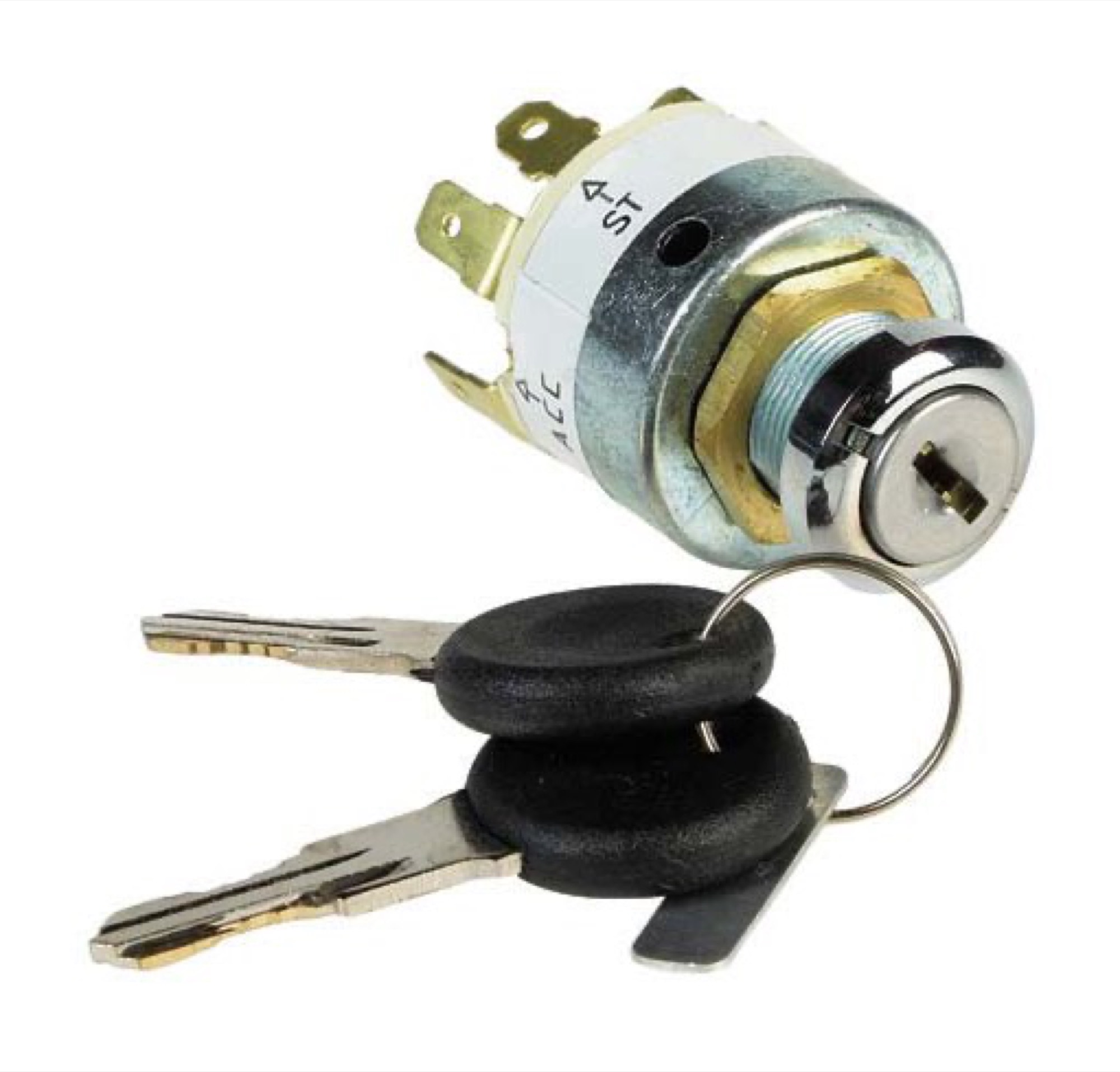 Smidigt tändningslås med alla lägen du behöver: parkeringsljus, av, tändning och start (återfjädrande). Levereras komplett med två nycklar och klarar upp till 60A i startläge.