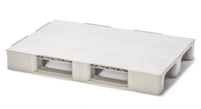En tät lastpall i stabilt utförande som passar utmärkt inom lager och industri. Med sin täta ovansida lämpar denna plastpall sig ypperligt för pallkragar i plast där en tät undersida önskas. Ovansidans är konstruerad med upphöjda kanter som håller gods och pall på plats hela vägen. En mycket användarvänlig pall med flera användningsområden.