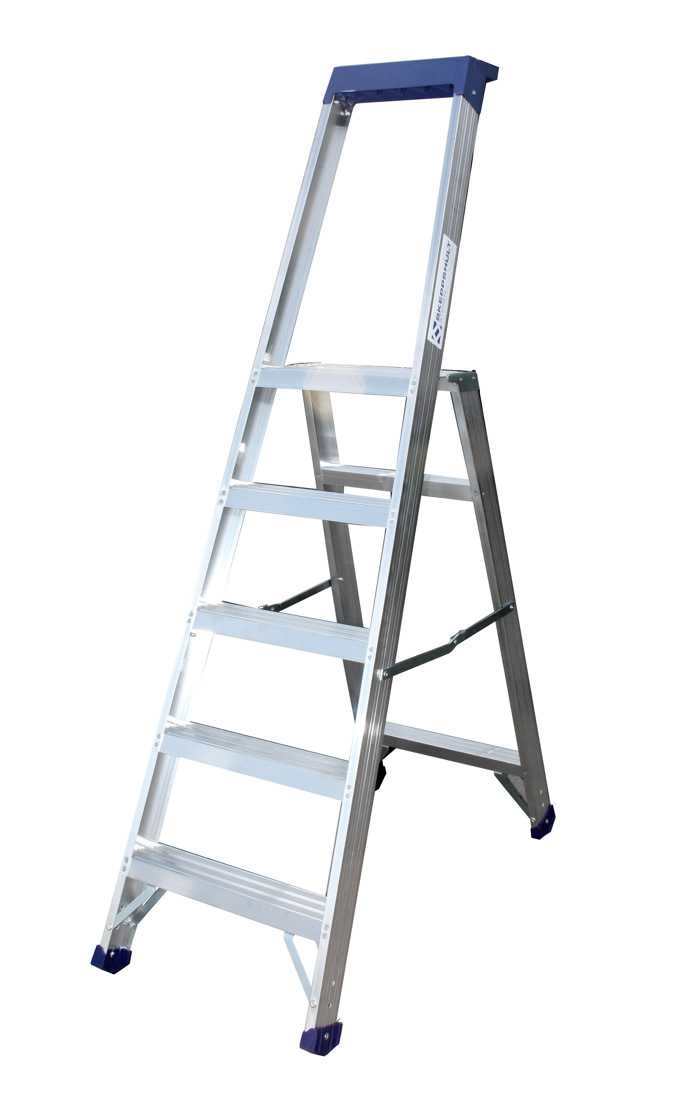 Denna trappstege är stabil och robust vilket gör att den passar i tuffa miljöer. Tillverkad i aluminium med hydraulnitade steg och en stabil plattform. Detta gör att stegen är stadig, att du säkert tar dig upp och ner samt har ett stort utrymme högst upp på stegen. Dessutom är den utrustad med fötter i plast vilket ger ett bra glidskydd och skyddar det underlag stegen står på. Högst upp finns en verktygshylla i plast monterad där du kan förvara dina verktyg medan du använder stegen. Finns med olika antal steg och i flertalet höjder och där plattformshöjden överstiger två meter ska stegar stagas eller förankras enligt Arbetsmiljöverket. Detta sker enklast med en stegbreddare eller stegfot. Denna trappstege uppfyller RS-gruppens krav för Bra Arbetsmiljöval.