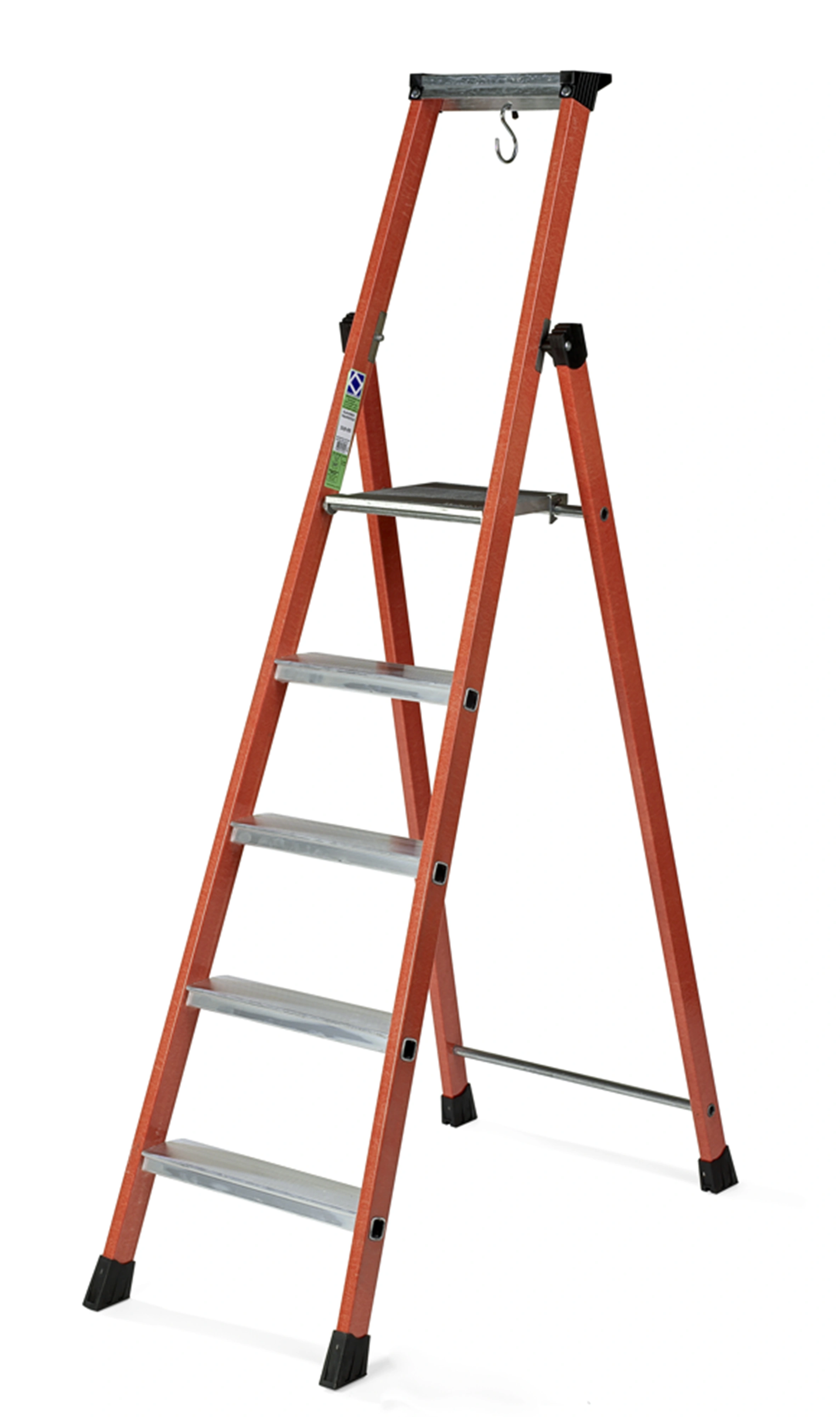 Denna trappstege med 7 steg har vangstycken tillverkade i glasfiber. Med andra ord är denna trappstege utformad i ett starkt och tåligt material. Dess steg och plattform är i aluminium. Trappstegen är testad till 30 000 volt. Enkel att fälla ihop och tar därför ytterst lite plats när den inte används.