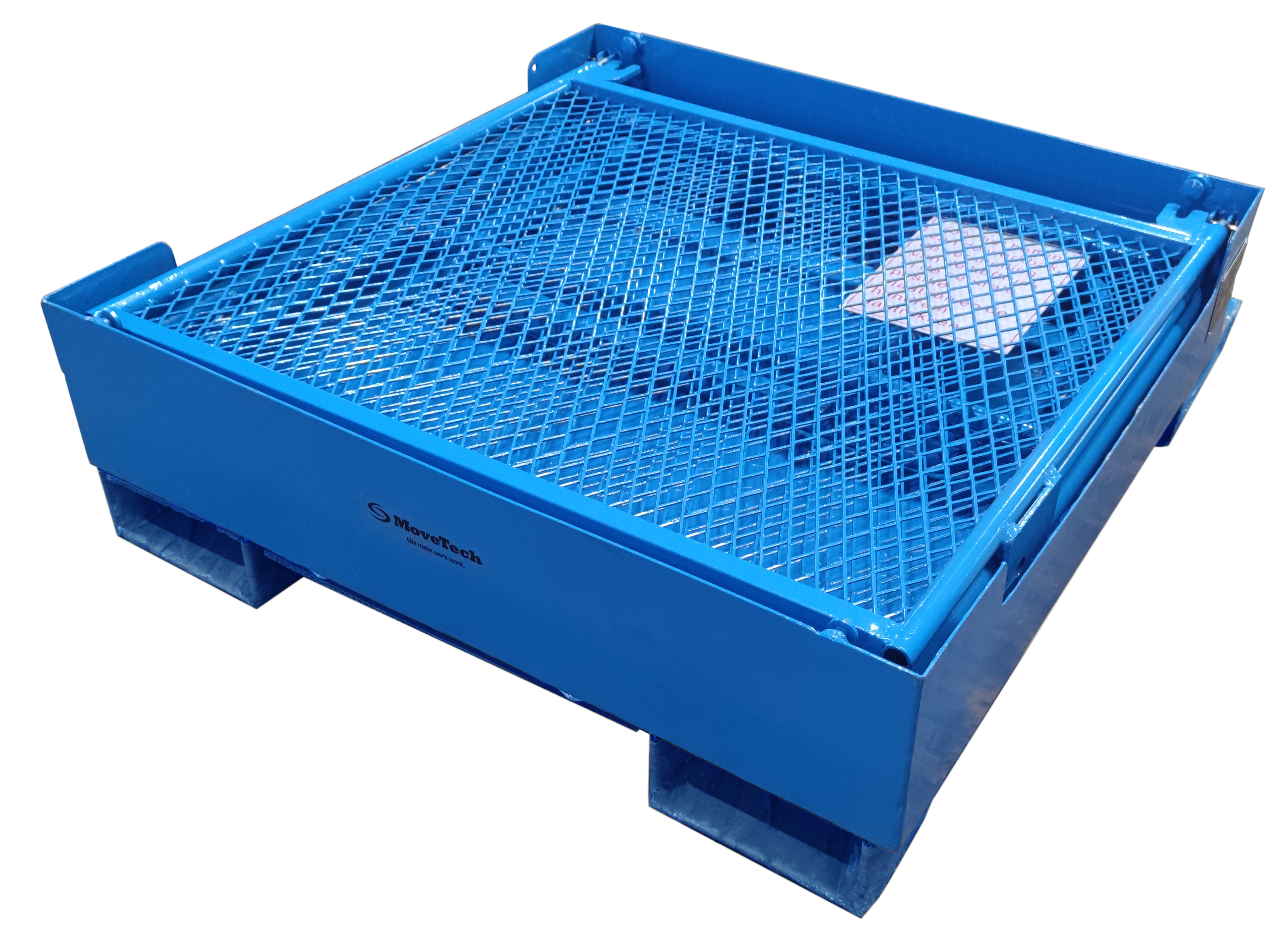 När gods behöver lyftas och transporteras på höjd med truck löser denna gula arbetskorg uppgiften säkert och effektivt. Med en lastplatta på 1 200 × 1 000 mm och en bärkapacitet på 300 kg hanterar den tunga pallaster i lager- och industrimiljöer. Gaffelutrymmet på 600/690 mm passar standardtruckar, och den hopfällbara konstruktionen sparar golvyta när korgen inte används. Egenvikten på 120 kg ger en stabil grund utan att onödigtvis belasta truckens lyftkapacitet.