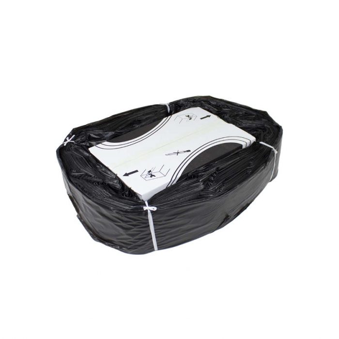 En rullsäck i tubformat passar hantering av oregelbundet eller skrymmande avfall där standardsäckar inte räcker till. Med en diameter på 572 mm och en rulle om 110 meter kapas säcken av efter behov och sluts med buntband eller knut — vilket eliminerar spill av material. Tillverkad i svart polyeten (LDPE) med en tjocklek på 20 my för tillräcklig tålighet vid normalt industriellt och lageranvänt avfall.