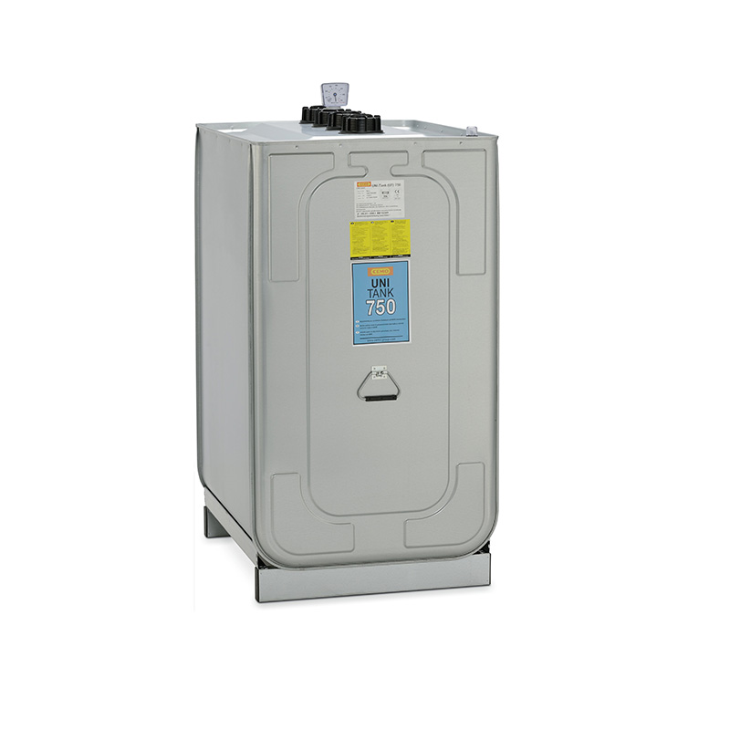 Dubbelmantlad konstruktion med ett yttre hölje i galvaniserat stål och en inre behållare i HDPE ger ett robust skydd mot läckage vid lagring av olja och diesel med flampunkt över 55 °C. Tanken rymmer 750 liter, väger cirka 66 kg och mäter 980 × 770 × 1 420 mm, vilket gör den hanterbar med truck. Godkänd enligt UN samt certifierad enligt Z-40.21-288, och passar för inomhusbruk eller väderskyddat utomhusbruk där reglerad bränsle- och oljelagring krävs.