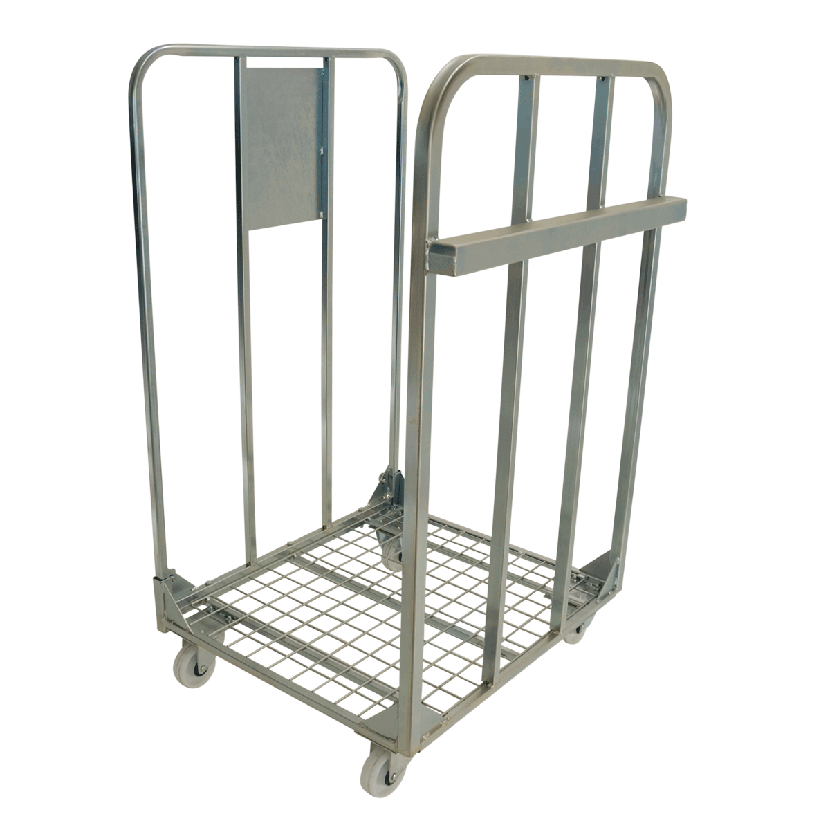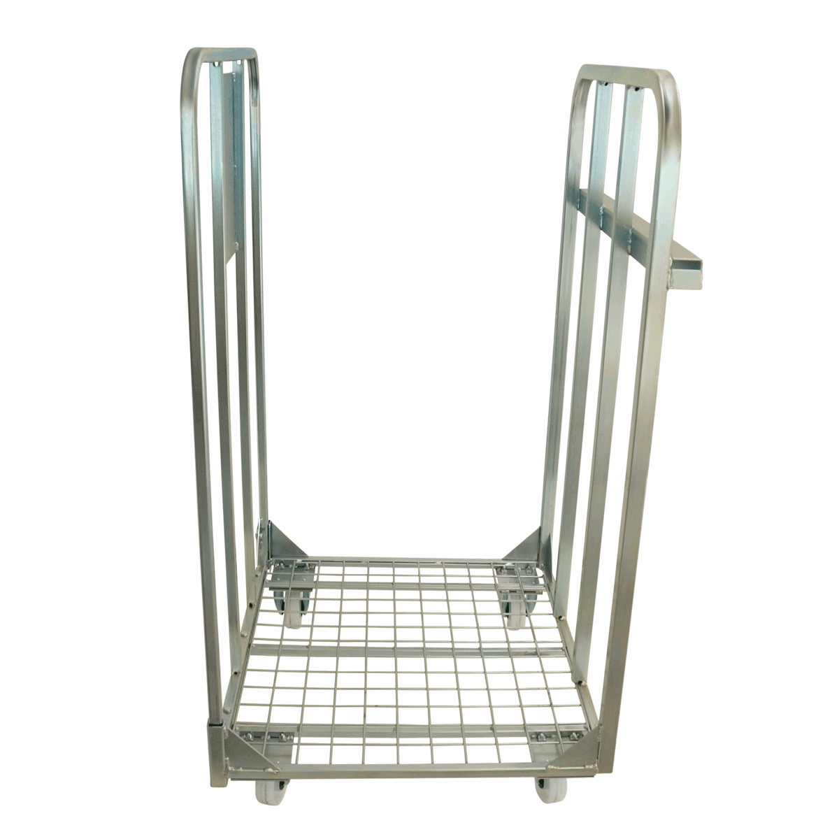Karin är en smidig vagn för wellpapp. Med en U profil på ena sidan för effektiv tömning i bil. På andra sidan finns en stor plåtyta A4 för dekaler. Vagnen har 125 mm hjul, 2 fasta och 2 rörliga