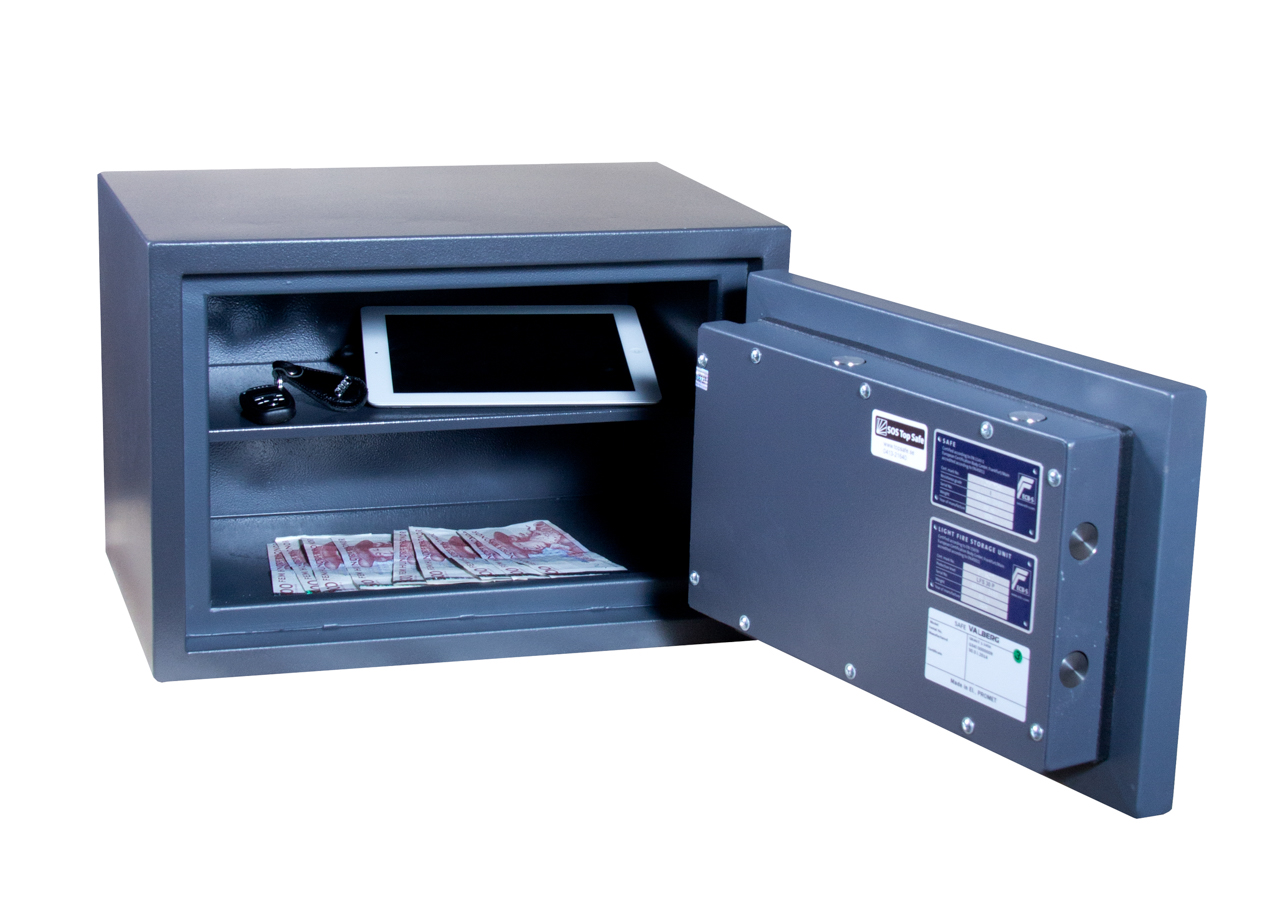 Värdeskåp med kraftigt inbrottsskydd. Beroende på grade (stöldklassning) tillåter försäkringsbolag förvaring av olika belopp, allt från tiotusentalskronor till miljonbelopp. Det här skåpet är klassat enligt EN 1143-1 Grade 1, viket innebär ett rekommenderat försäkringsbelopp på 80 000 kr i olarmad lokal. Det är även brandklassat enligt LFS 30P EN 15659. Skåpet passar utmärkt för säker förvaring av smycken, värdepapper, värdeföremål eller stora summor kontanter. Det är inrett med en hylla och kan förses med antingen nyckellås eller elkodlås.